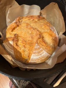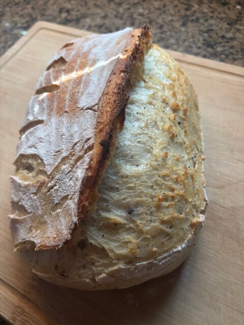 I’ve always enjoyed cooking…but a baker??? Nope. Cooking for me is a creative process, baking is science and I’m not good at following directions when it comes to creative outlets. So when I honed my process and realized how simple and forgiving it really can be, I’m all over it now. And the creative part? You just wait…I’ve done all kinds of fun things with my loaves. Here at our house, we really like seasonings like Ranch or Dill Pickle. We’ve also enjoyed Spicy Garlic and Pizza seasoning. If you live near a Trader Joe’s, they really do have the best seasoning selection. When baking for others, I take requests (within reason) and have done things like roasted garlic, rosemary, thyme and lemon zest, cinnamon raisin swirl, Everything Bagel, caper and garlic, you get the idea. The options are really endless and sharing my weird joy with friends and family adds to my happiness.